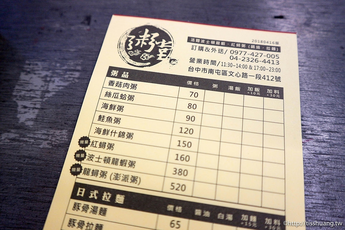 台中南屯|粥堂(文心店)|紅蟳粥160。波士頓龍蝦粥380。沙公粥。沙母粥