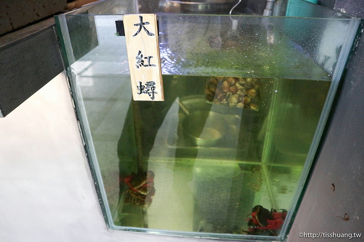 怎麼缸裡才二隻大紅蟳?生意太好嗎?其實說它大隻也還好,大小應該說只能算是中等