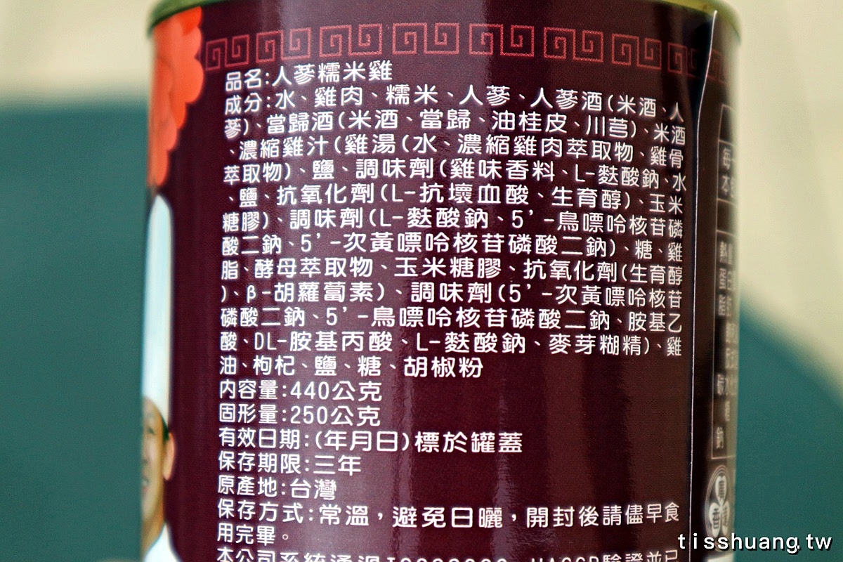 「人蔘糯米雞」一罐的份量大約是我一餐的份量