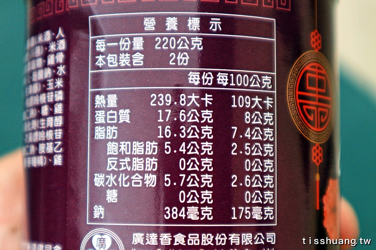 「人蔘糯米雞」和「麻油杏菇雞」,這兩種口味的廣達香罐頭以後一定會成為家中必備的食品,家裡不想開伙,也不想叫外賣,那麼就可以立刻開一罐,又可以飽足又可以養身,俗話說的好:「補冬,補嘴空」,廣達香的罐頭就是一個「補嘴空」的好藉口。
