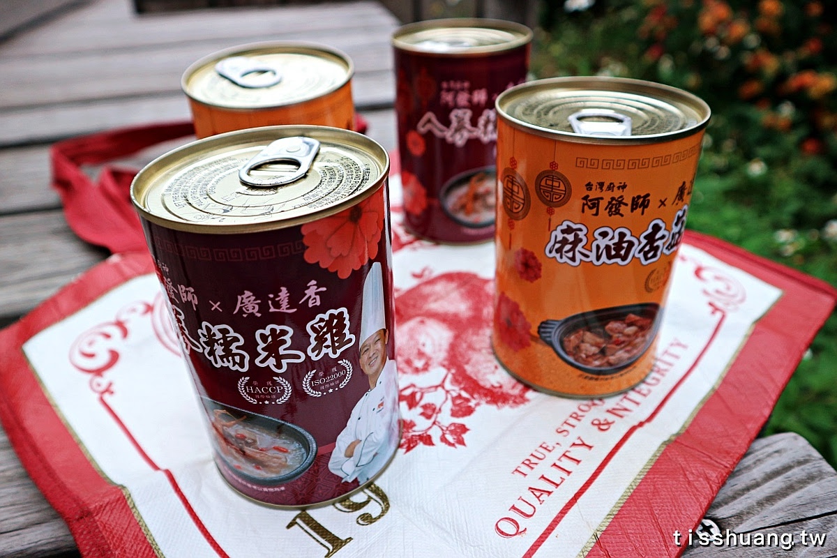 「麻油杏菇雞」、「人蔘糯米雞」,這兩款美食經過阿發師的手藝再加上廣達香專業的封罐技術,我們今天才能夠隨時隨地享受到這兩種美食,現在單身不婚的人這麼多,又加上獨居老人也越來越多,還有一些小孩回到家沒有大人,在家都跑去吃便利商店的微波食品,其實這些我認為都是社會問題,企業經營就是要在社會的需要上看到需求,然後幫助解決社會問題,其次才是以賺錢為目地,這點我想就是廣達香罐頭食品為什麼能這麼歷久不衰的原因吧。逢年過節送禮,來一箱廣達香罐頭食品「麻油杏菇雞」、「人蔘糯米雞」,體面又大方,推薦給大家。