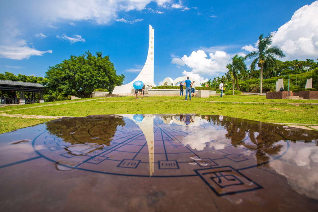 北回歸線標誌公園位在瑞穗舞鶴台地,白色日晷造型的北回歸線標誌,是旅客經過舞鶴台地時必拍照的景點,而公園內周遭設有巨大茶壺造型的裝置藝術、廁所、休憩區,在公園兩側的木製迴廊中,設有許多跟天象、氣候、節氣、地球科學等相關的解說牌示,夏日時這裡還會舉辦夏至235的活動,吸引人潮前來探訪吃美食、看表演。(照片取自官網)