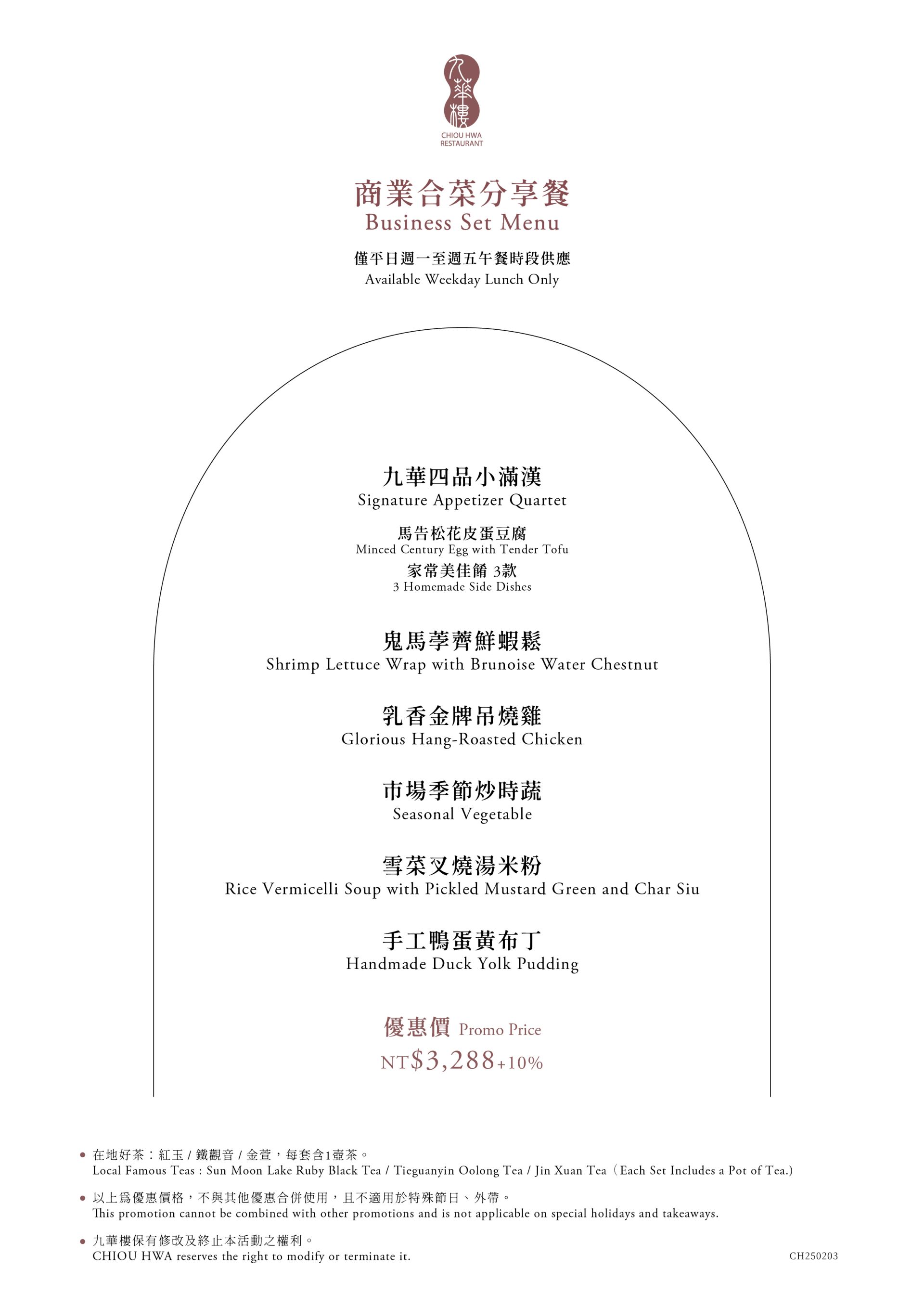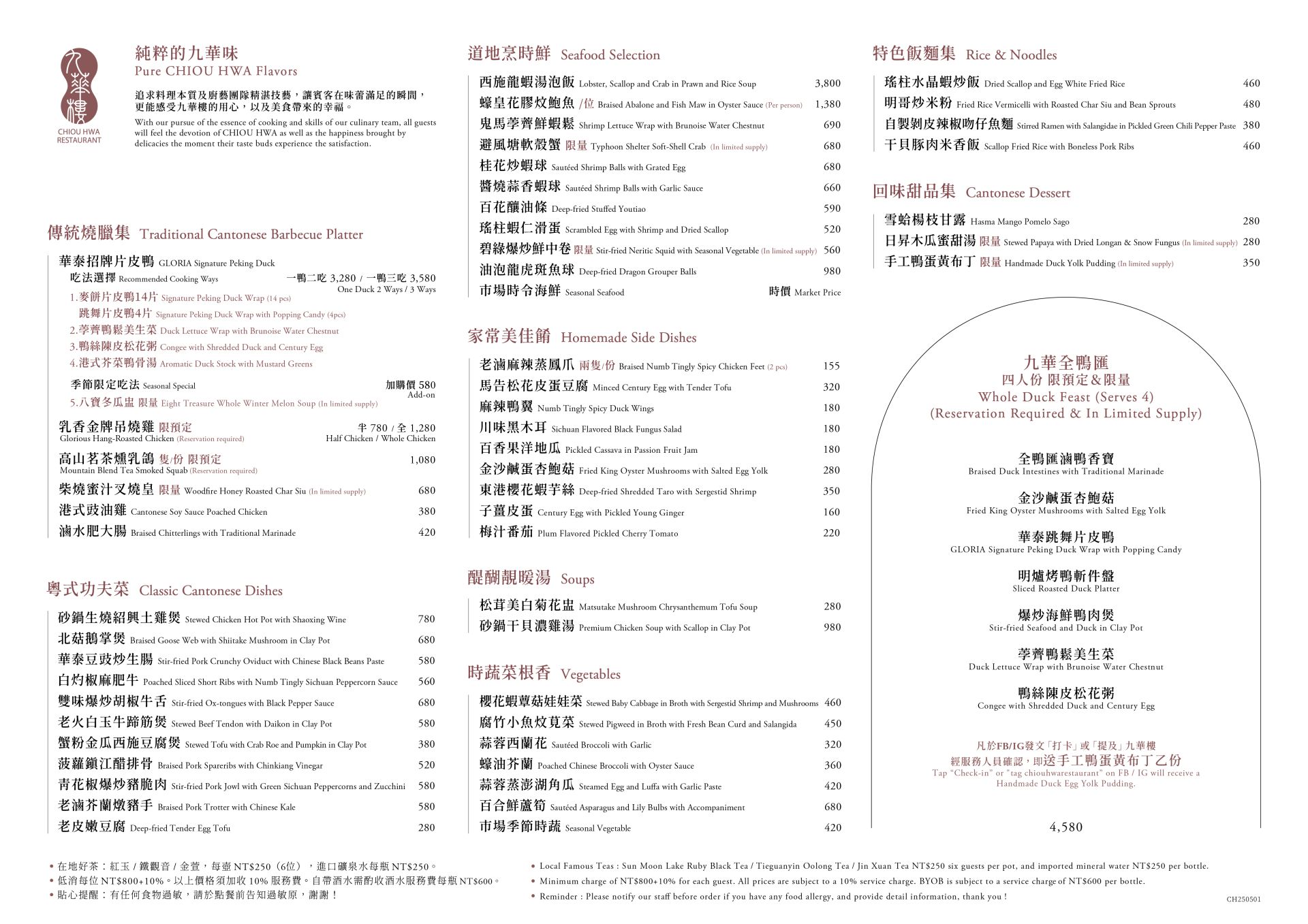 除了單點之外,九華樓大直店的晚間套餐也非常值得推薦。以下是我這次實際用餐時選擇1980的晚間套餐內容,分享給大家參考:
