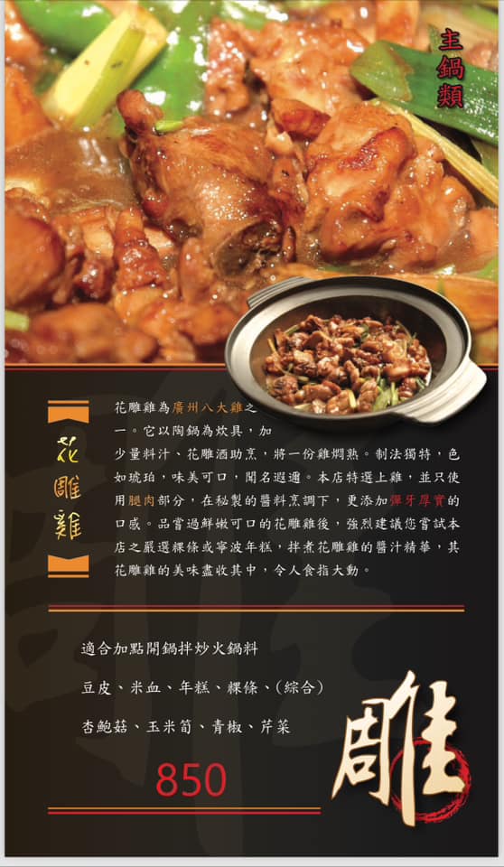一開鍋,整桌瞬間瀰漫濃濃花雕酒香,那種撲鼻而來的溫潤氣味讓人食慾大開,朋友們異口同聲說:「這香味太誇張了,像在港式老店聞到的味道!」 主角雞肉使用的是去骨雞腿塊,經過高溫乾鍋爆炒後再淋入花雕酒與醬汁滾煮,保有滑嫩多汁的口感,且每一塊肉都牢牢吸附酒香與醬香,咬下去鮮嫩中帶著溫潤酒氣,味道深邃有層次。