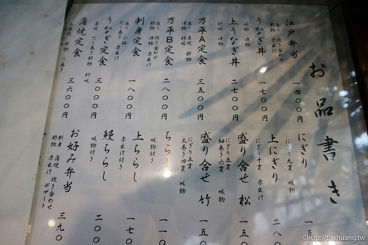 我看了網路上介紹這間萬平日本料理店的鰻魚飯一份要1700日幣,價格還算可以接受