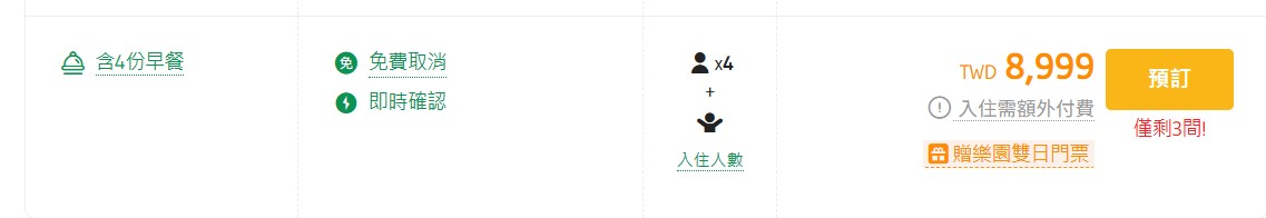 • 大人(12歲以上):$1,700 (含早餐及樂園門票)