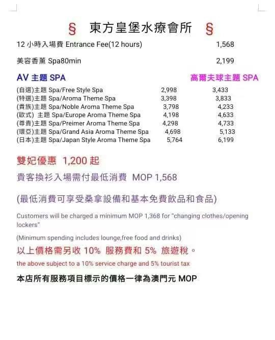 技師素質也在澳門名列前茅,服務口碑極佳,是許多資深玩家一致推薦的高品質場館。想來點不一樣的體驗,東方皇堡絕對值得一試!