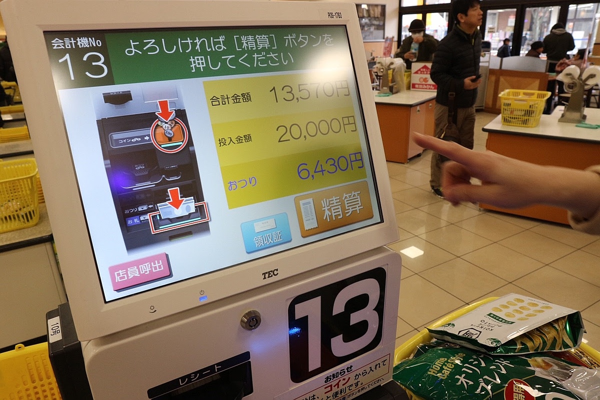 你只要投入日幣之後然後按精算,就會找零錢了,好先進的設備呀!