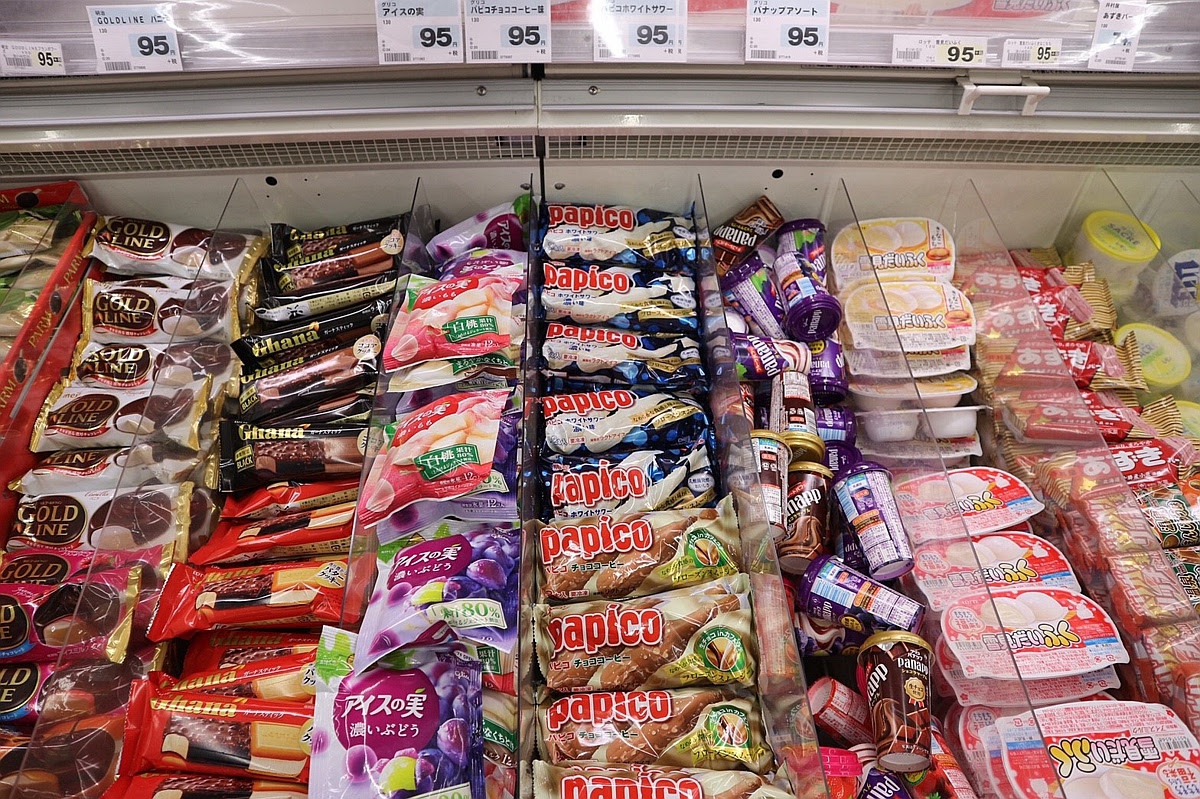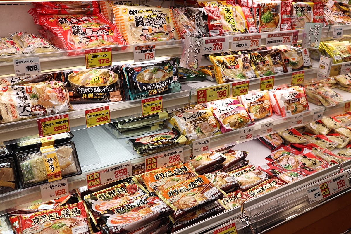 有飲料、清酒、泡麵、罐頭、水果、牛奶、咖啡、冰、餅乾、壽司等…
