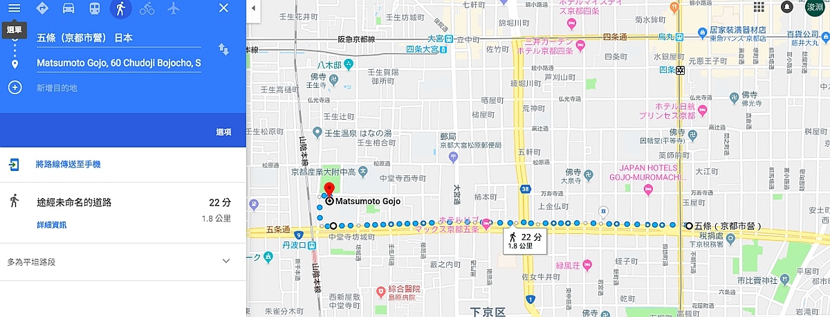 (烏丸五條站→走路22分鐘 or 搭公車5分鍾→五條壬生川站)