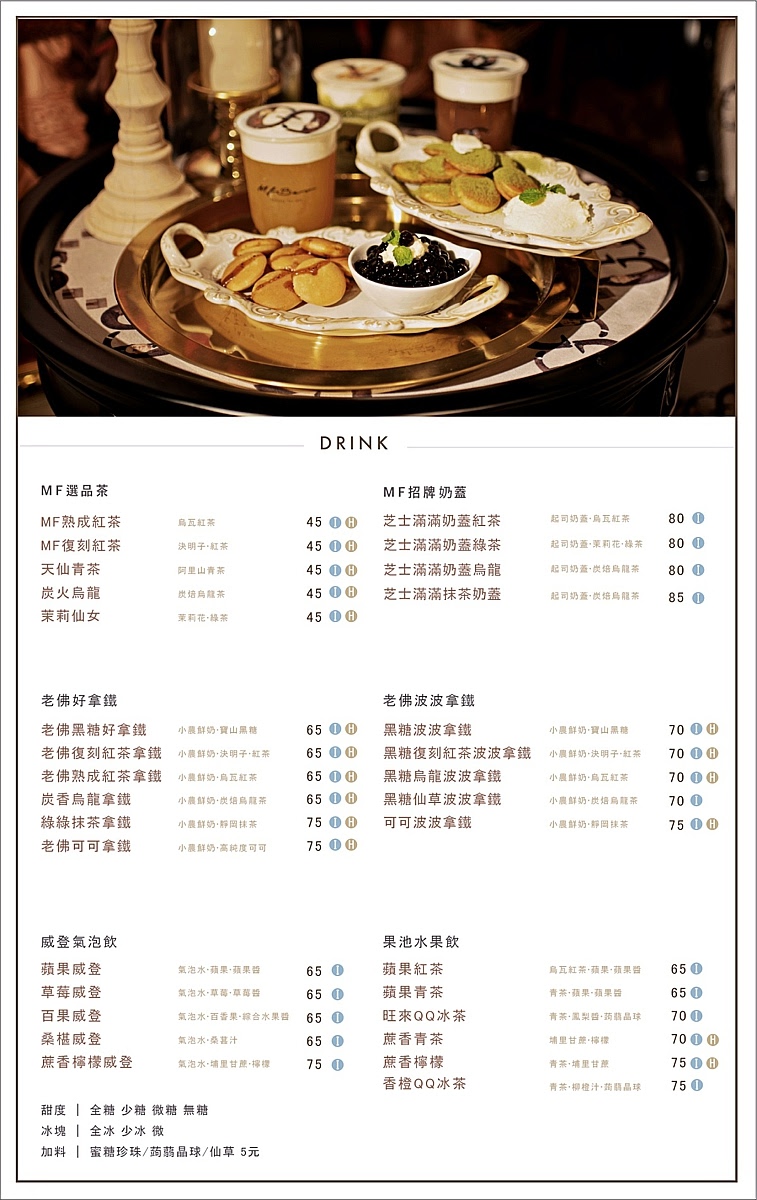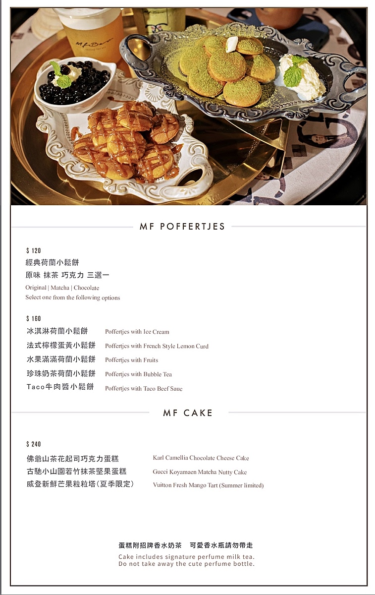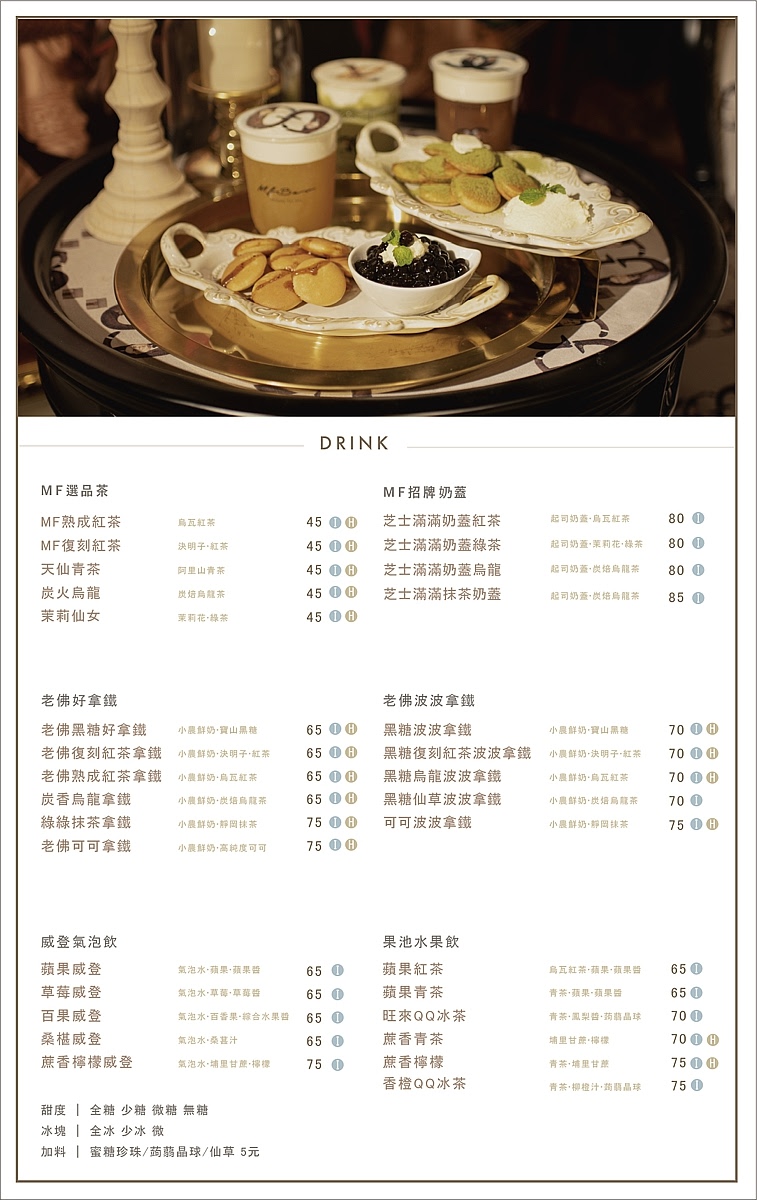 在餐廳內你可以吃到精美可口的蛋糕、各種茶飲、咖啡、水果茶、汽泡飲,種類真的非常多,像是來到手搖飲店的升級版