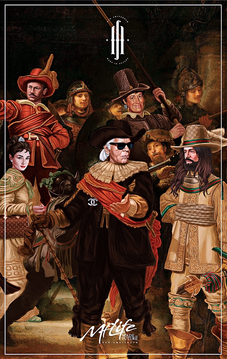 這幅畫我遠遠一看還以為是耶穌與十二門徒最有名的一幅畫名叫「最後的晚餐」,結果近近的一看才發現裡面的人物很多都是知名的設計師,像是香奈兒的老佛爺
