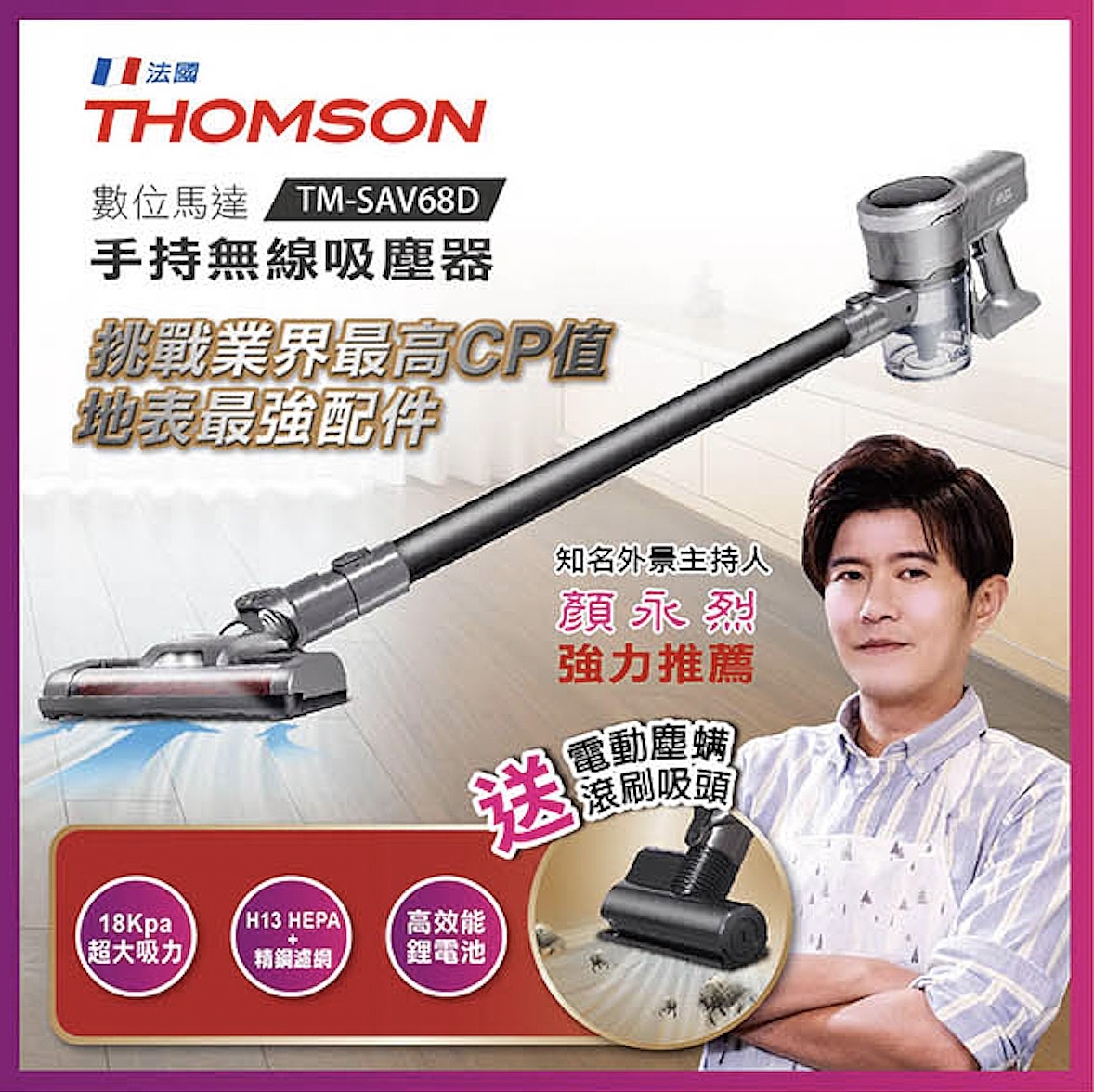 Tiss直接開箱測試了DYSON和THOMSON的吸力,真的有得拚!!直接看影片開箱8萬轉數位DC直流無刷馬達,強勁吸力極致靜音,壽命長 18kpa氣旋創造強力渦流,極大化除塵效果,專用電動塵螨滾刷吸頭,高效清潔塵蟎灰塵 H13等級HEPA濾網,有效過濾塵螨及各種過敏源,具有電動馬達地刷,有效吸附微塵、大小顆粒集碎屑 收納壁掛充電座,簡單又方便,超長伸縮軟管配置清潔無死角、可延伸55-160cm 軟絨滾筒地刷、有效吸除地面大顆粒垃圾灰塵,兩段強弱控制,依據吸塵環境自由選擇 可水洗式集塵桶、濾網 手持無線設計,清潔範圍無所限制,一鍵傾倒設計、乾淨不沾手,組合式吸頭可根據清潔區域調整,依需求連接不同吸塵配件!