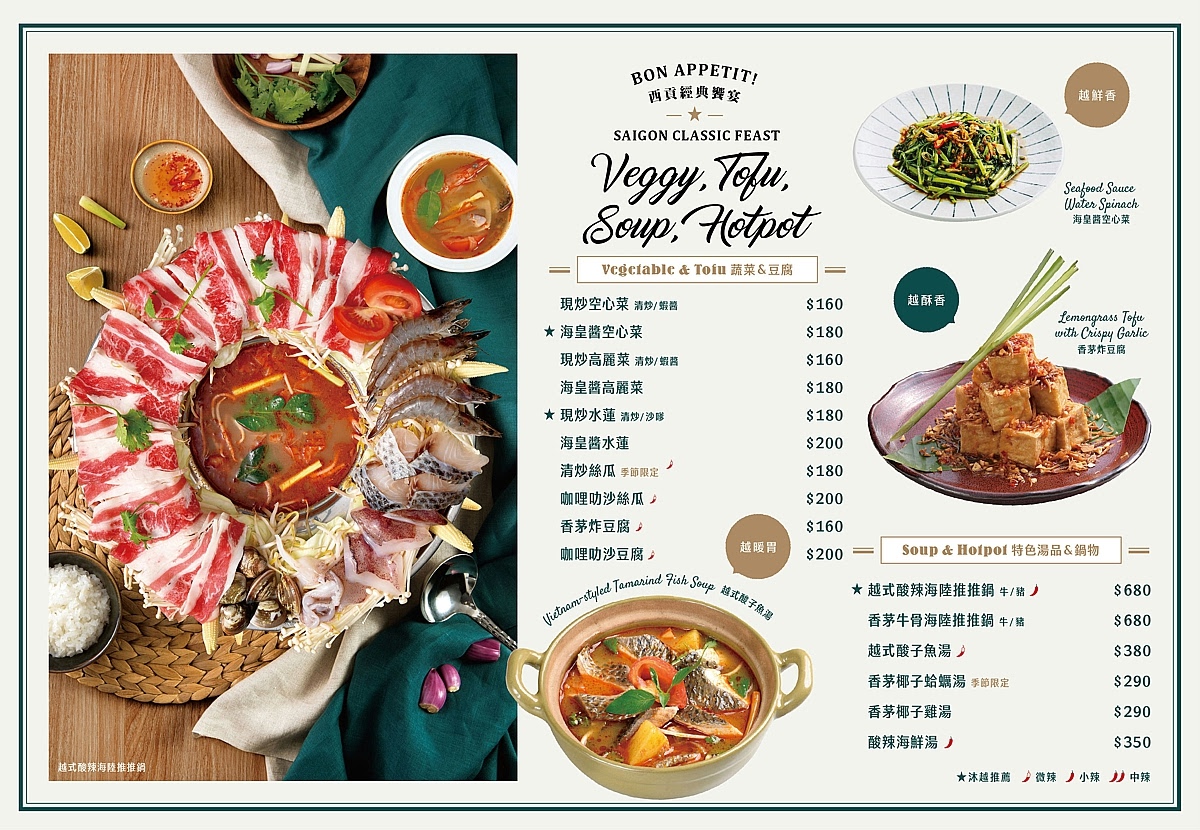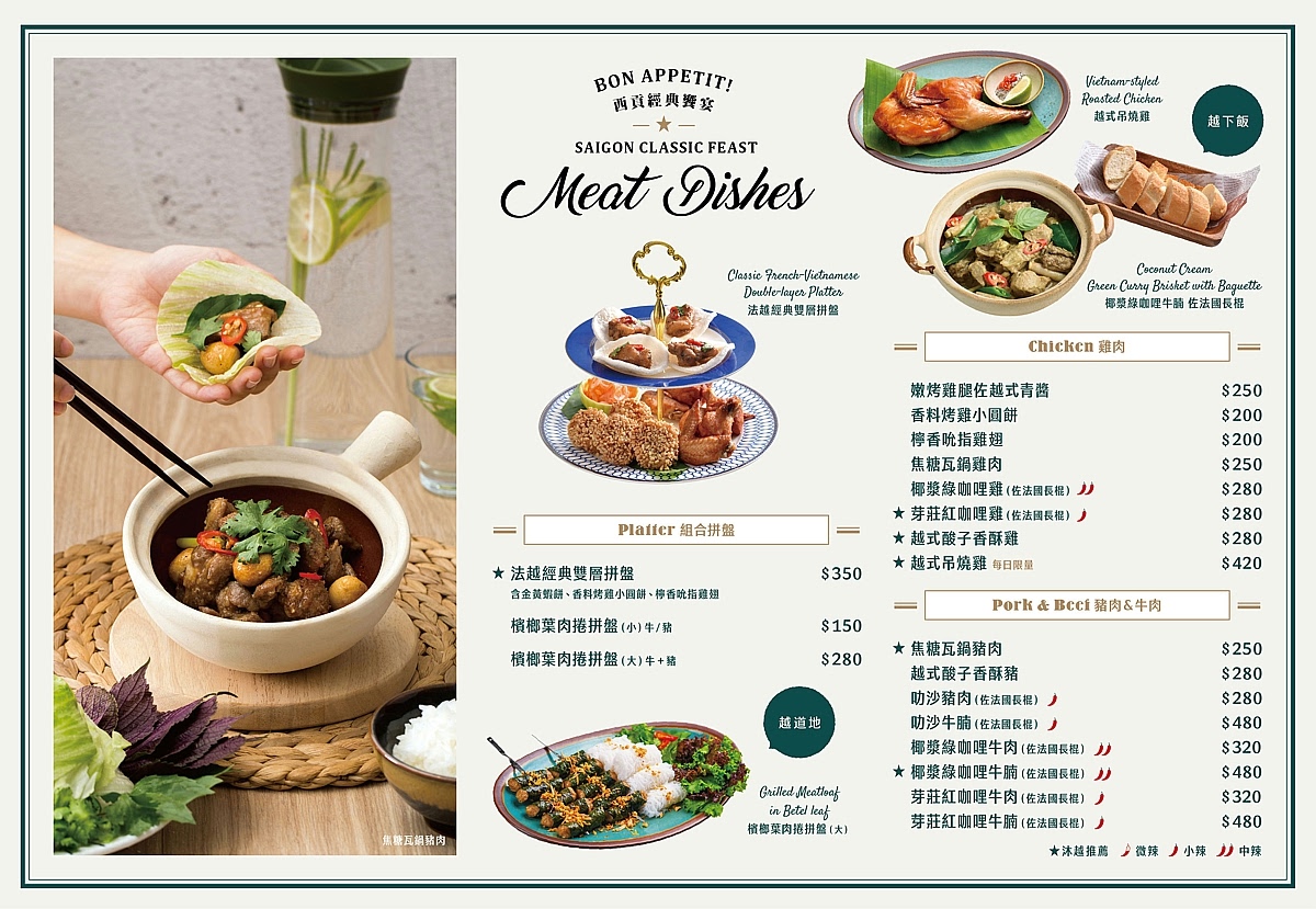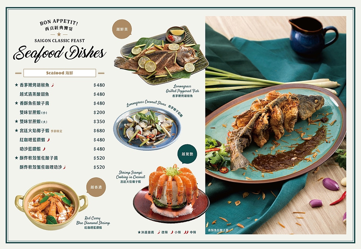 沐越的菜色多達80多道的道地越南料理,並且結合了許多法式經典食材,
