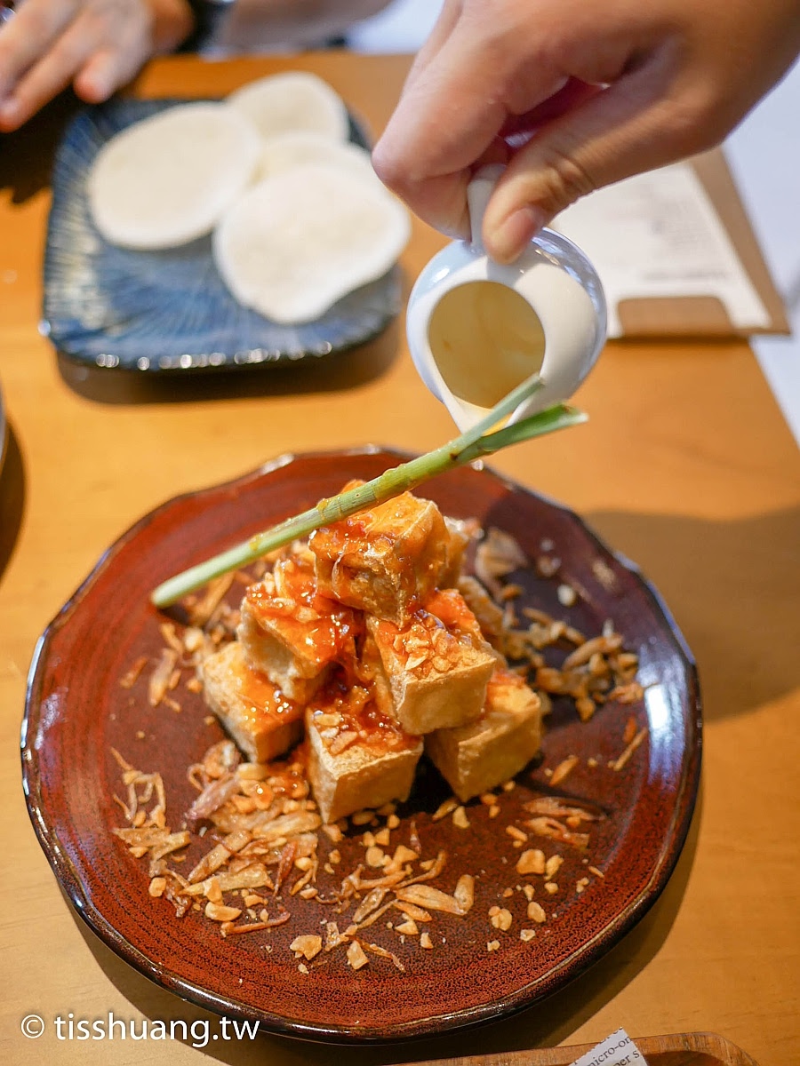 豆腐外皮的酥脆及內餡的鮮嫩口感,再加上醬汁在嘴裡一起爆發,