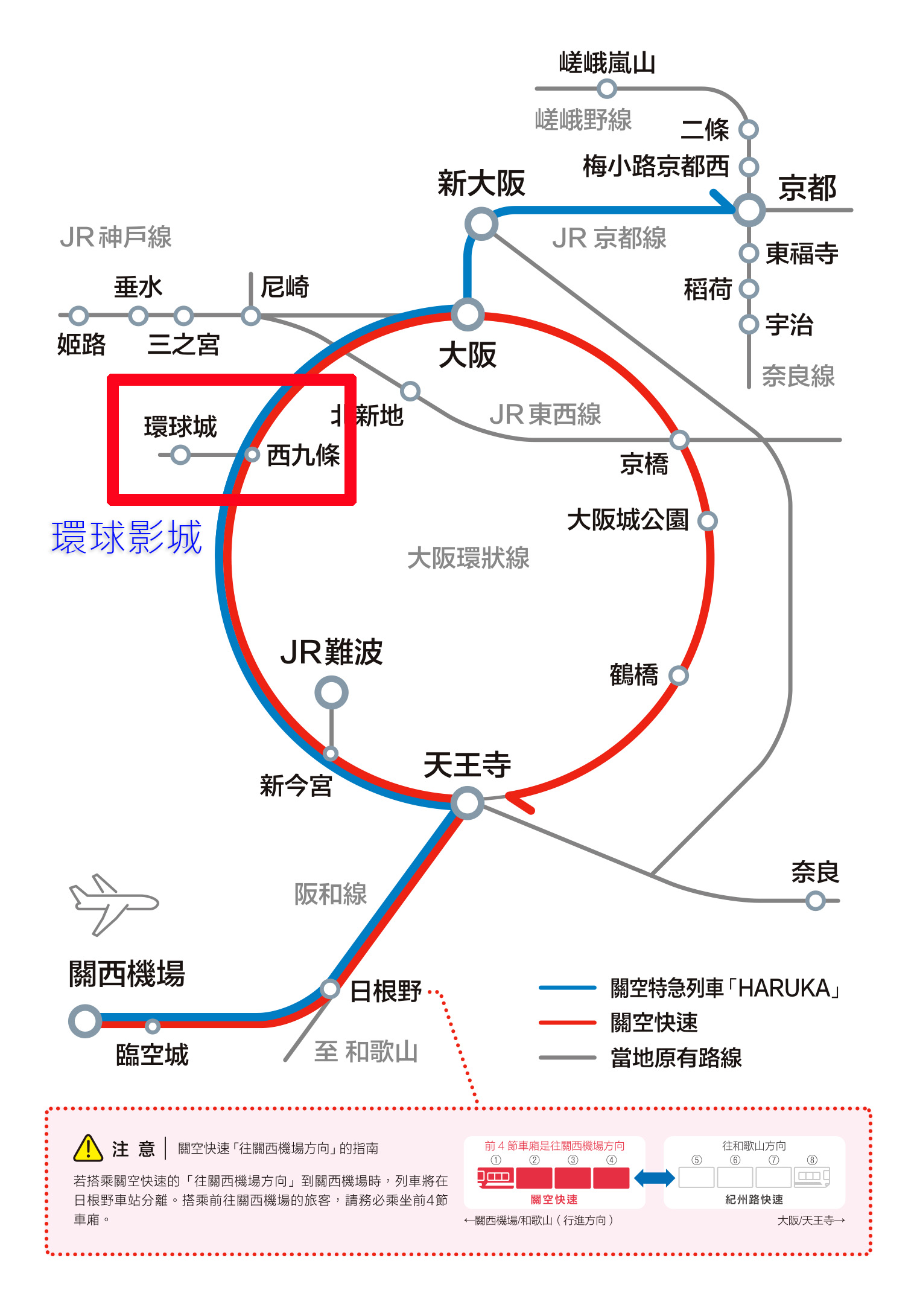 - 行駛路線:關西機場 → 天王寺 → 新大阪 → 京都