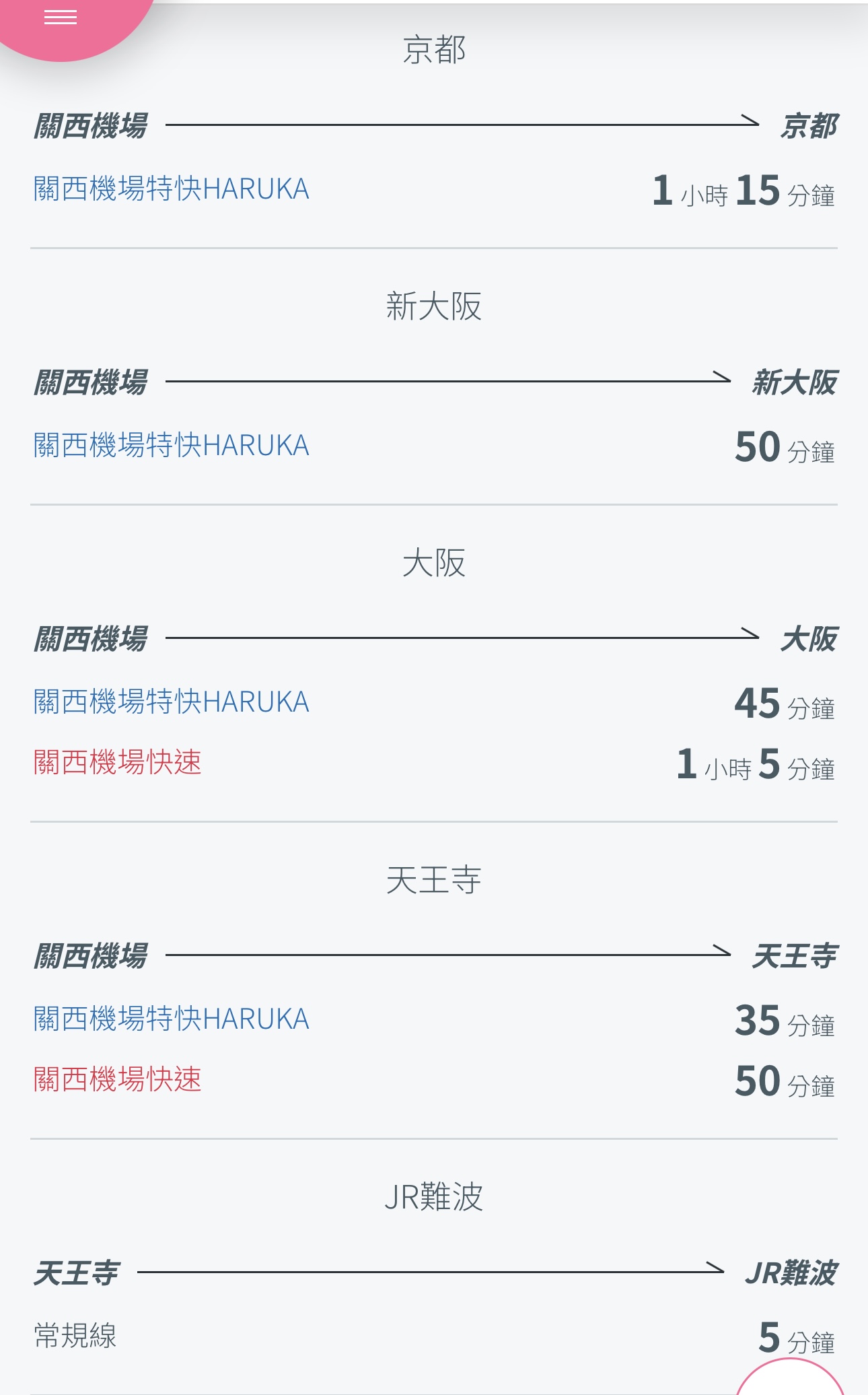 時間:約30分鐘抵達天王寺、50分鐘抵達新大阪站。