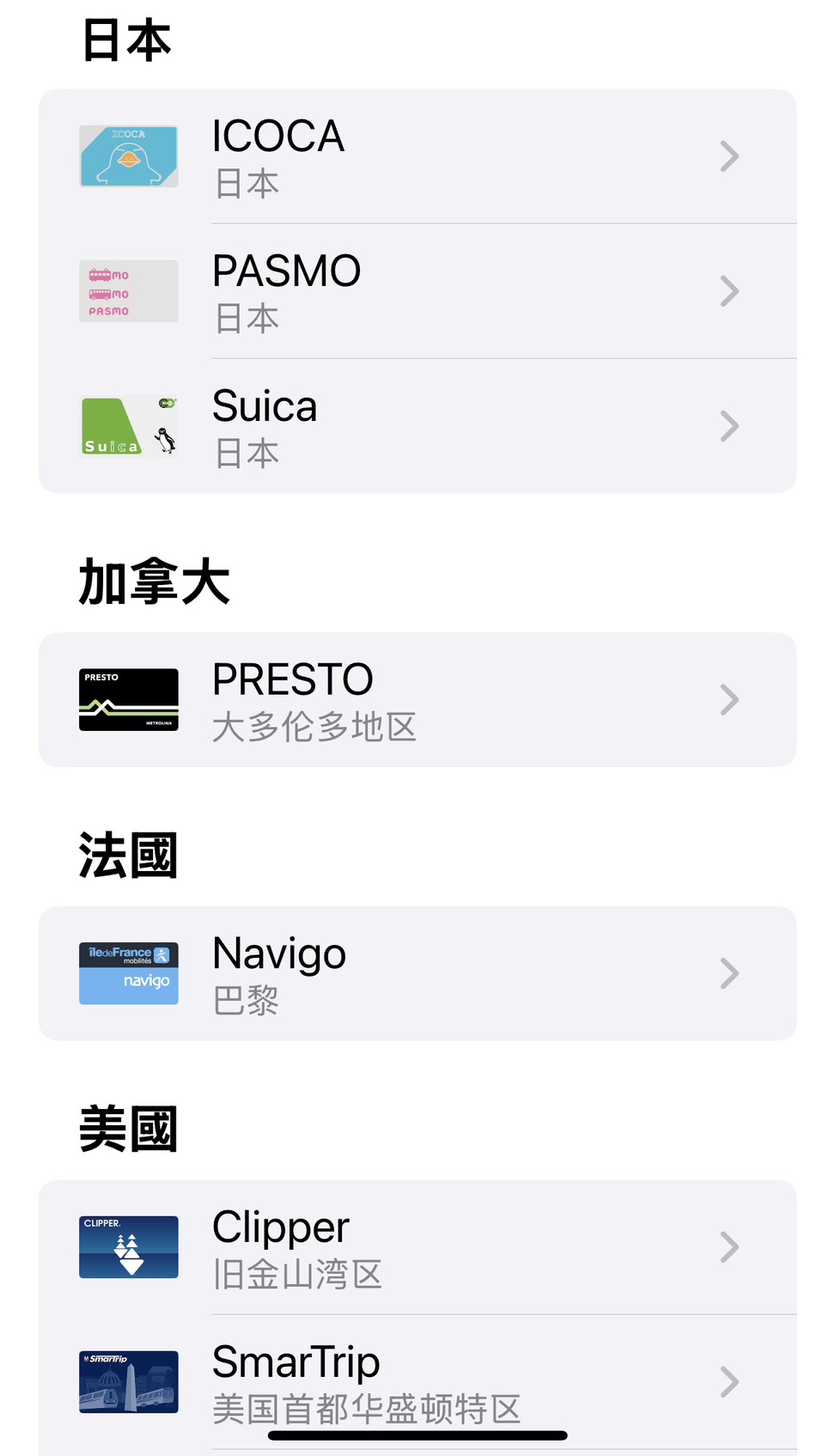 - 選擇「交通卡」,再選擇Suica或ICOCA進行卡片新增。
