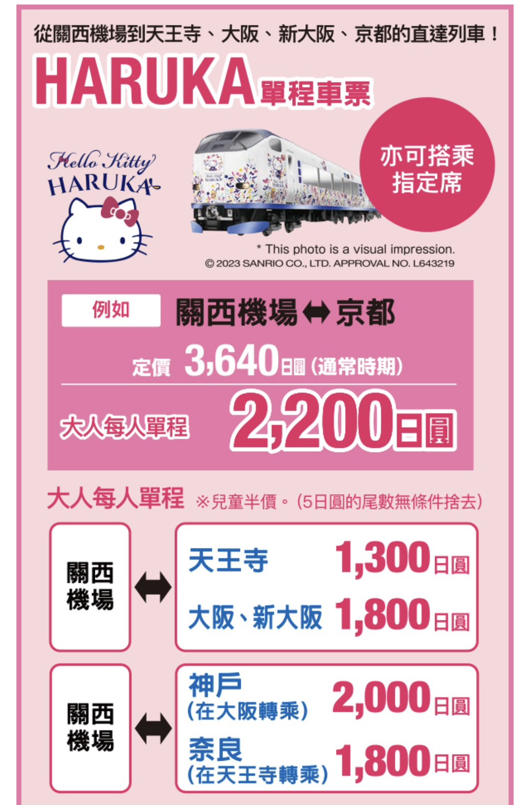 價格:關西機場到大阪或新大阪站約326台幣,6歲以下免費(不佔位),6-11歲半價。👉大阪HARUKA快車預約