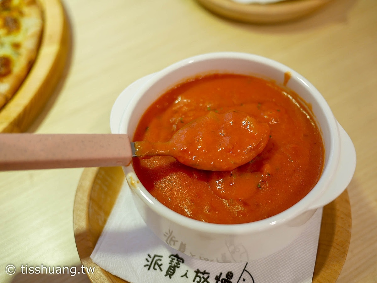 超濃郁的番茄蔬菜湯,整個打得非常細緻,喝完像吃完整顆番茄一樣