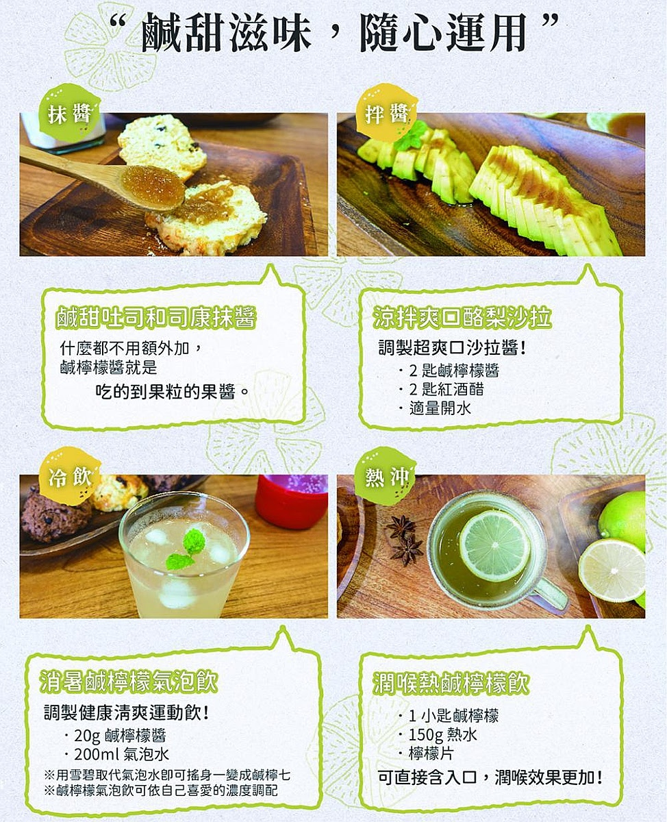 採用純天然蔗糖、海鹽、檸檬製成