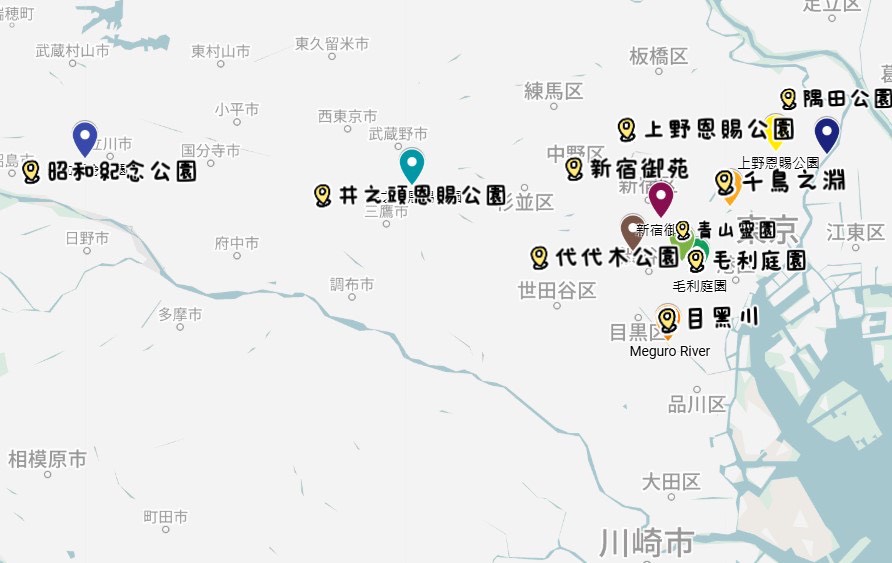 ✅ 最熱門 & 交通最方便 → 上野恩賜公園、新宿御苑