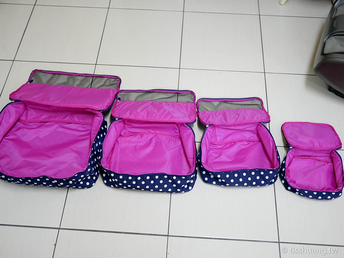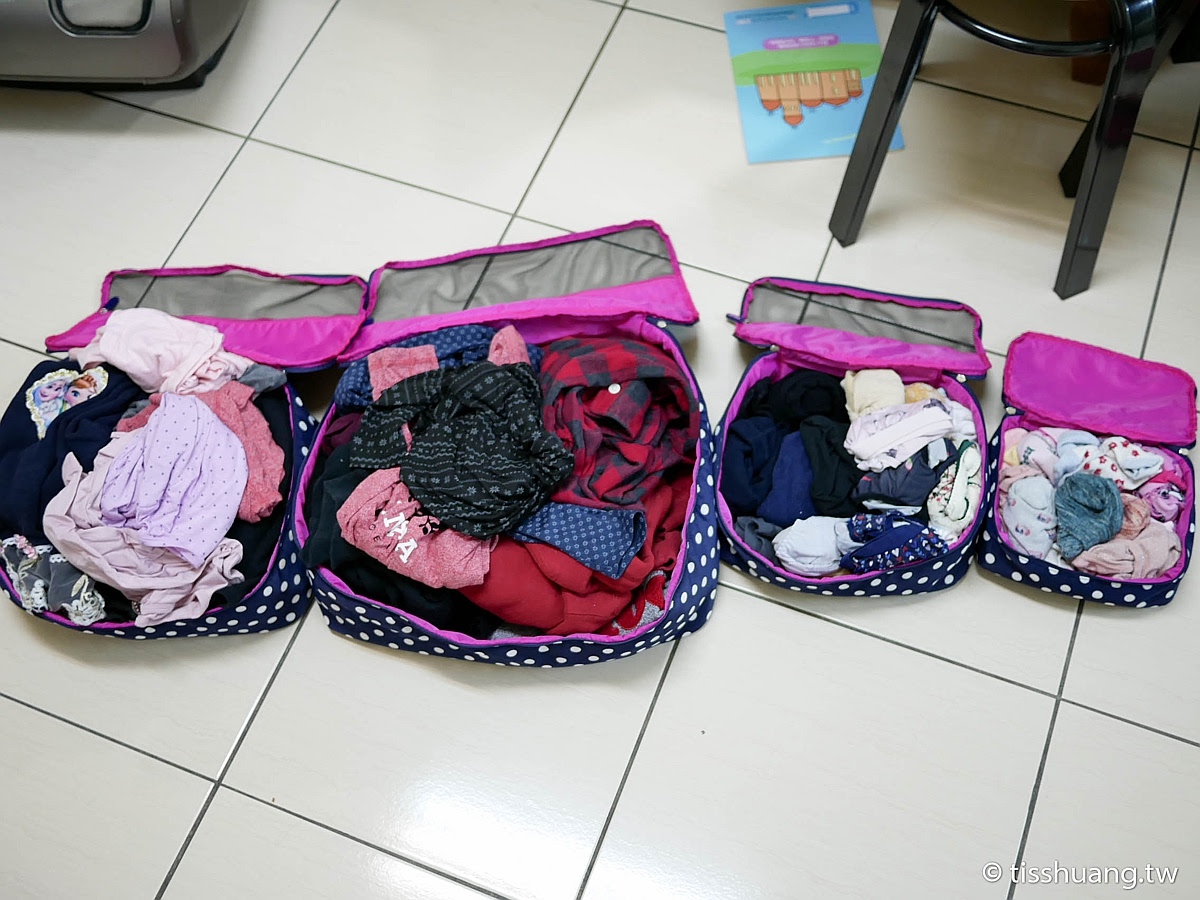 四件組收納包有不同的大小,這次去旅行也特別用這個來收納