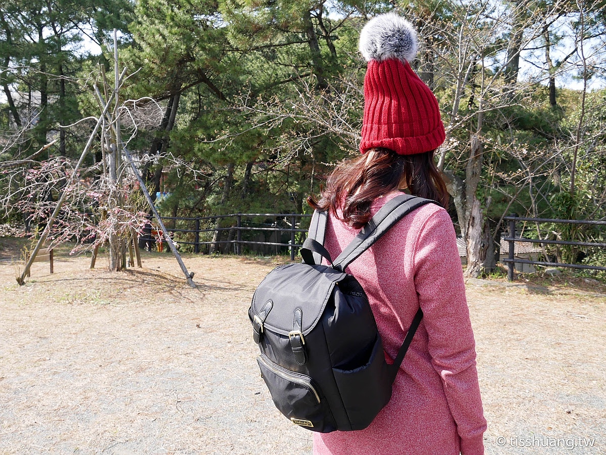 這次去日本就揹著它到處去,原本我穿著一件厚羽絨,