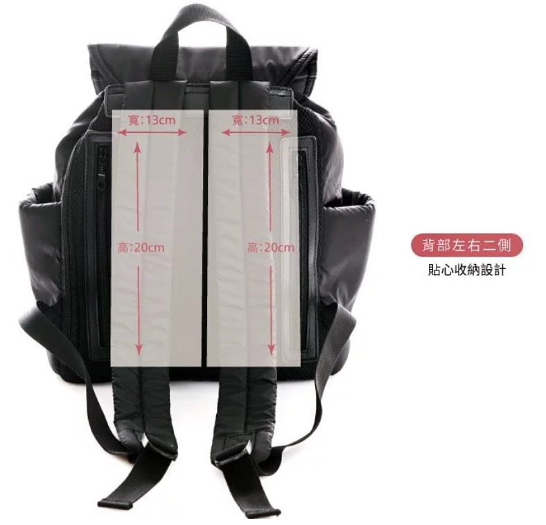 背部左右兩側都有拉鍊可以拉開,方便收納