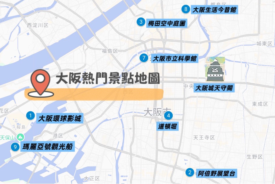 大阪景點地圖-大阪周遊卡